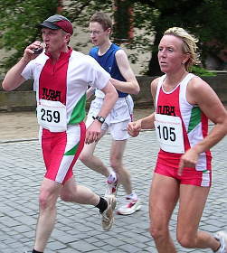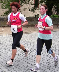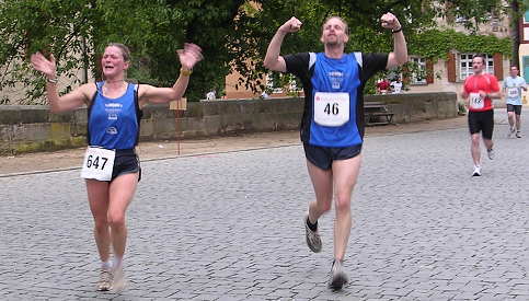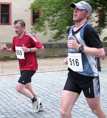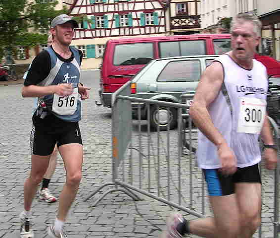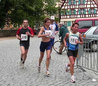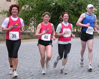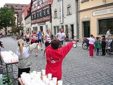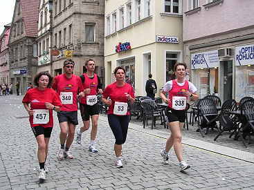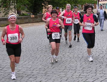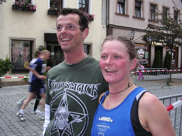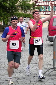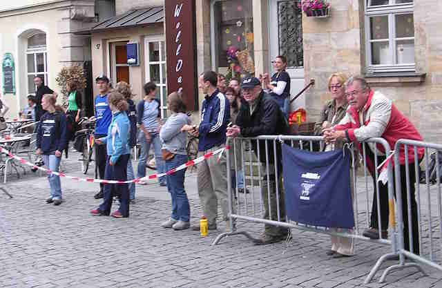 während des Laufes nicht regnete. Die Fangemeinde des TSV Amboss 02 fand sich in der MIRAGE-Kurve ein, um ihre Läufer vor dem Zieleinlauf am Rathausplatz noch mal so richtig anzufeuern. |