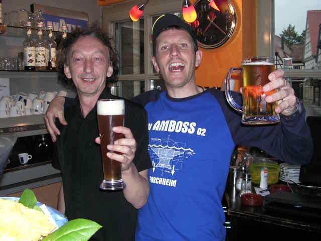 Unser Amboss-Mann bei der letzten Runde in der MIRAGE-Kurve. Und danach der Lohn der Mühen, während Gerdi, der Wirt vom MIRAGE schon mal das