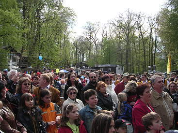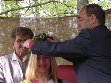 “Von der Seite!”, dirigiert die Fotografenmeute den OB. Und fotografengerecht setzt Franz Stumpf die Hopfenkrone Nicole aufs Haupt.