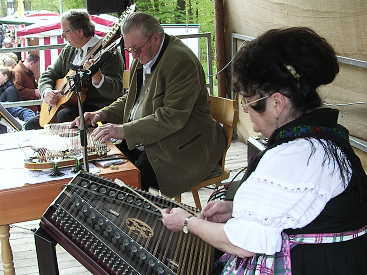 Für echte Stimmung sorgte Max Grellner aus Hirschbach in der Oberpfalz. Er spielt Zither made in Forchheim, begleitet von Hackbrett und Kontrabaßgitarre.