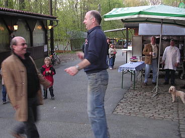 Während der Rappenwirt mit dem Autor eine neue Sportart entdeckte: Extreme Bierwamping (Die Kontrahenden springen gleichzeitig hoch und