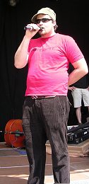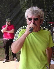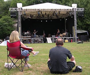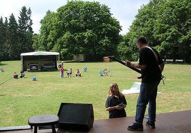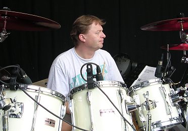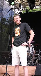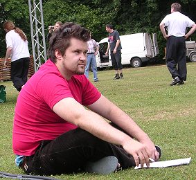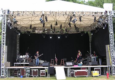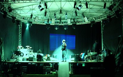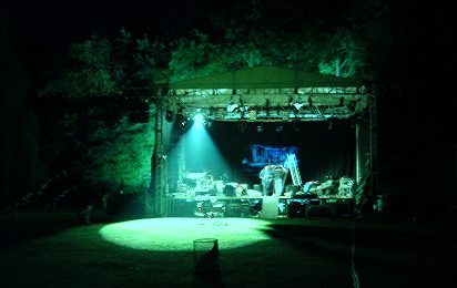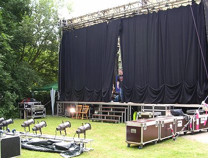 und ihre Helfer haben eine riesige Bühne errichtet - Thomas Drummer steht auf der Bühne und beordert die Unsichtbaren an ihre Plätze. |