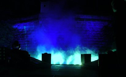 Plötzlich öffnet sich der Bühnenhintergrund und ich werde Zeuge eines einzigartigen Spektakels: Nebelschwaden erheben sich im blauen Licht, kriechen an