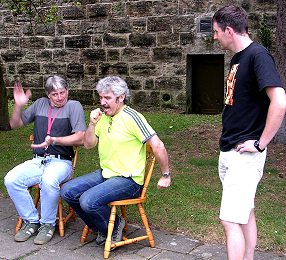 Heizer rezitiert, Andy Laveatz prüft die Performance und Tobias checked den Sound |