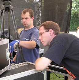 Christian Wolfrum und Thomas Drummer sind die stillen Helden dieser Tage. Was diese Jungs geschleppt, verkabelt, aufgestellt und sich Nächte um die Ohren